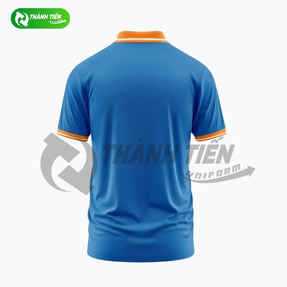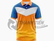 Chi tiết mẫu áo polo đồng phục công ty cam xanh trắng