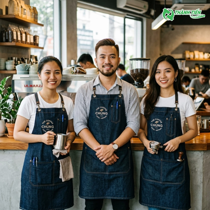 Trong môi trường chuyên nghiệp như các quán café, nhà hàng hay quầy bar, tạp dề bartender không chỉ là một vật dụng bảo hộ mà còn là một phần quan trọng thể hiện phong cách và sự chuyên nghiệp của nhân viên. Tại Thành Tiến Uniform, chúng tôi tự hào là xưởng may tạp dề bartender uy tín, mang đến những thiết kế tạp dề pha chế hội tụ đủ ba yếu tố: Thẩm mỹ - Bền bỉ - Giá thành hợp lý.